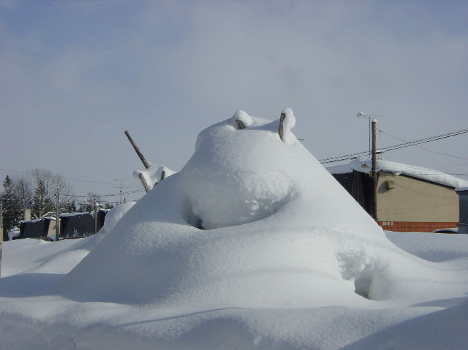 雪が被る前は何だったのか不明、なぞの物体